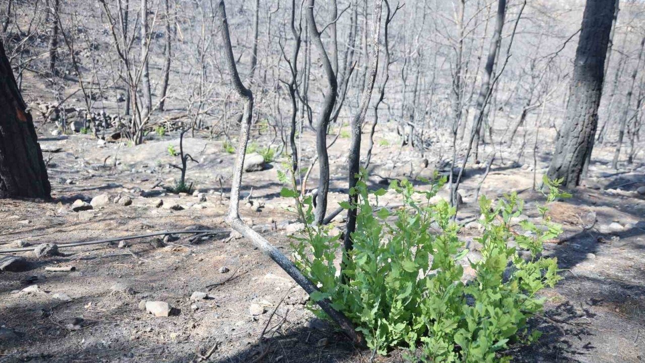 Hatay"da 36 saat süren mücadeleyle söndürülen ormanlık alandaki yangının yaşandığı bölgede, kendiliğinden fidanlar yeşerdi. Yanan binlerce ağacın köklerinden yeşeren fidanla, doğa kendini yenilemeye başladı.