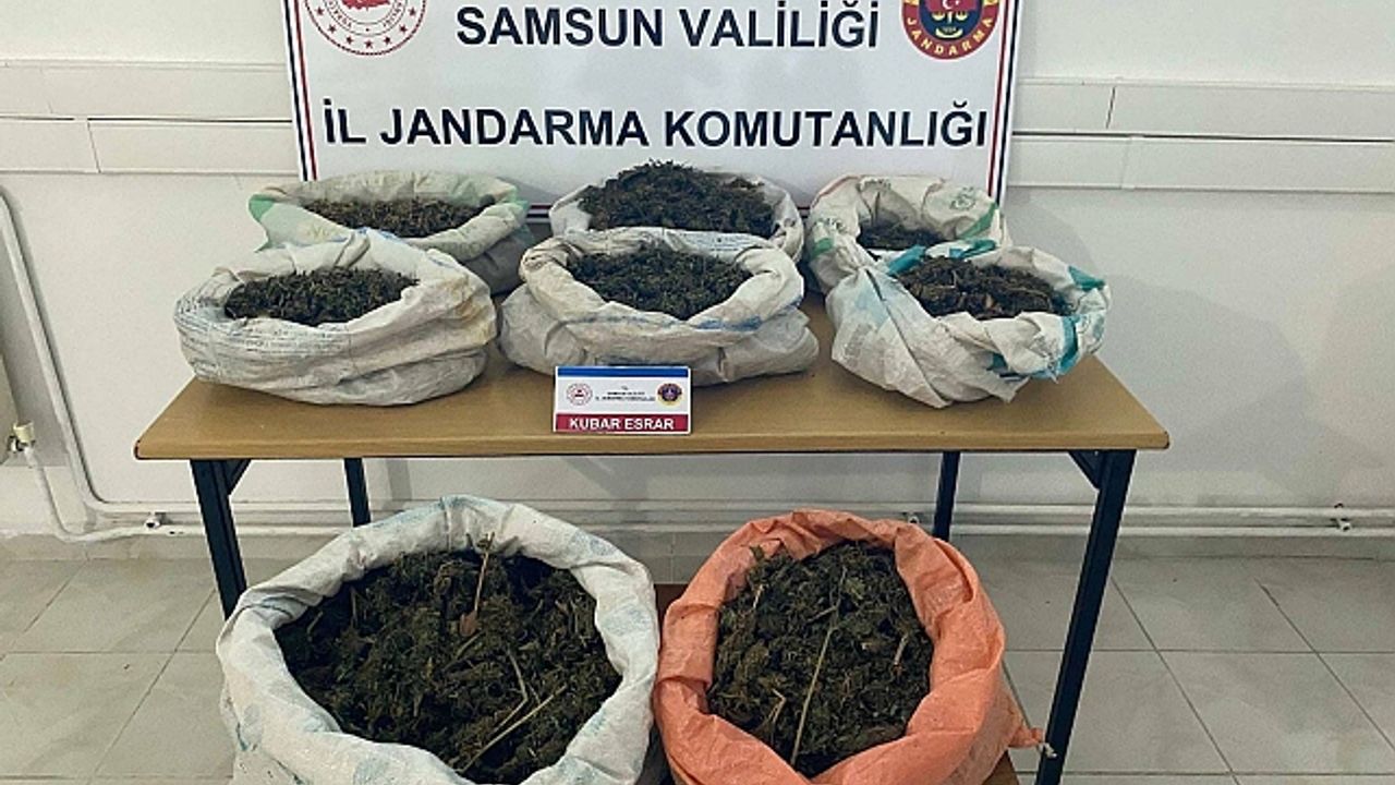 Samsun''da jandarma ekipleri tarafından düzenlenen uyuşturucu operasyonunda ormanlık alandaki çadır içinde 8 kilo 525 kilo kubar esrar ele geçirildi.