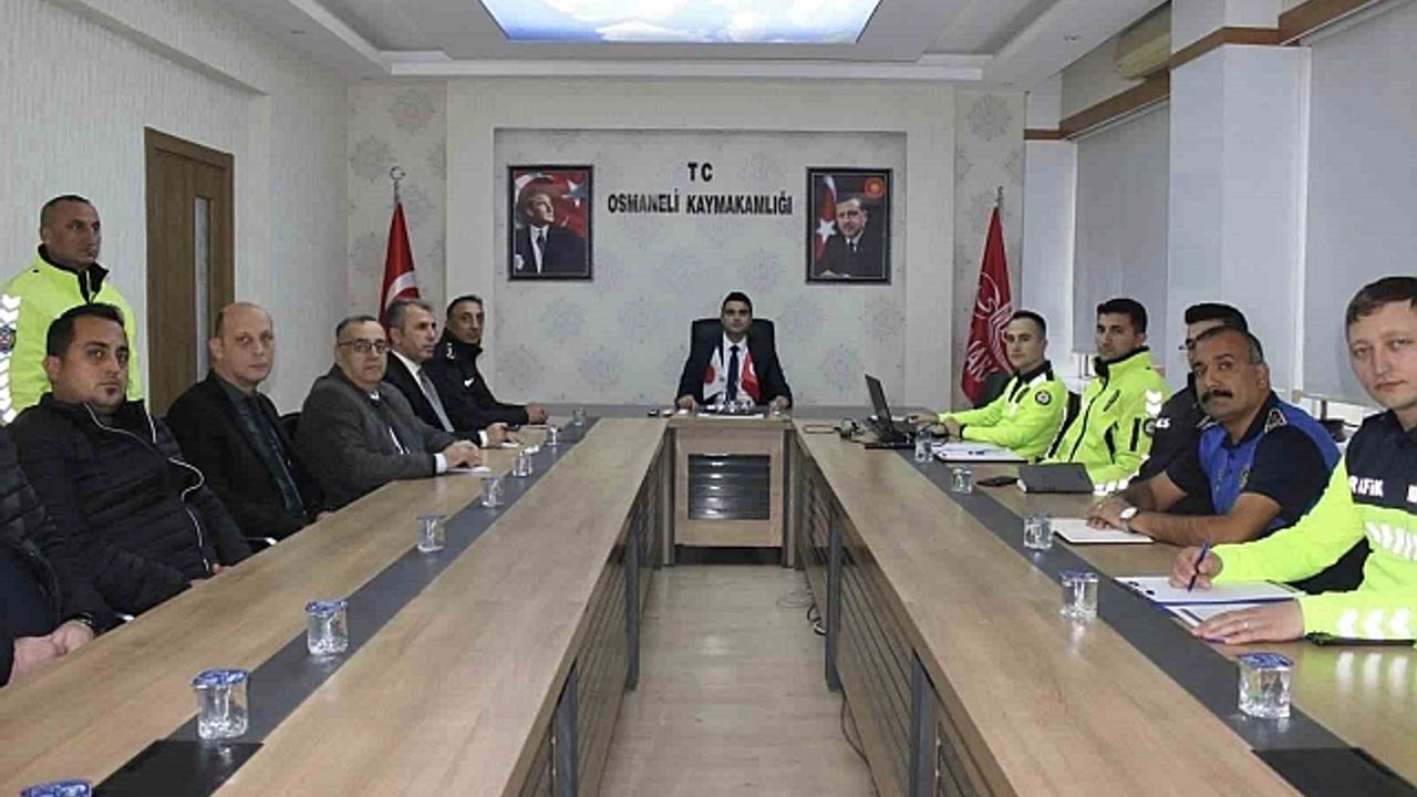 Osmaneli Kaymakamı Abdüssamed Kılıç''ın başkanlığında ilgili kamu kurum ve kuruluşları ve sivil toplum kuruluşu temsilcilerinin katılımıyla kış mevsimi nedeniyle oluşabilecek risklerin tespiti ve alınacak tedbirlerin belirlendiği ''Kış Mevsimi Trafik Tedbirleri'' toplantısı gerçekleştirildi. Toplantıda kurumlar arasında gerekli koordinasyon sağlanarak kış mevsimi şartlarından dolayı vatandaşların yaşayabilecekleri olumsuzlukların önlenmesi amacıyla alınması gereken kararlar alınarak gerekli planlamalar yapıldı.