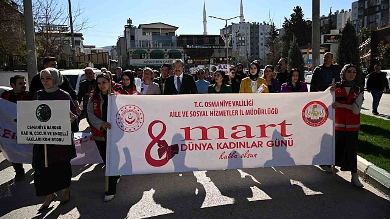 Osmaniye Muhsin Yazıcıoğlu Bulvarında düzenlenen yürüyüşe Osmaniye Valisi Erdinç Yılmaz, Aile ve Sosyal Hizmetler İl Müdürlüğü personeli, Osmaniye Barosu, Siyasi Partilerin Kadın Kolları üyeleri ve Sivil Toplum Kuruluşu temsilcileri katıldı. Yürüyüş sonrası 8 Mart Dünya Kadınlar Günü dolayısıyla kadınlar tarafından hazırlanan resimlerin ve el işi ürünlerin bulunduğu sergi açılışı gerçekleştirildi.