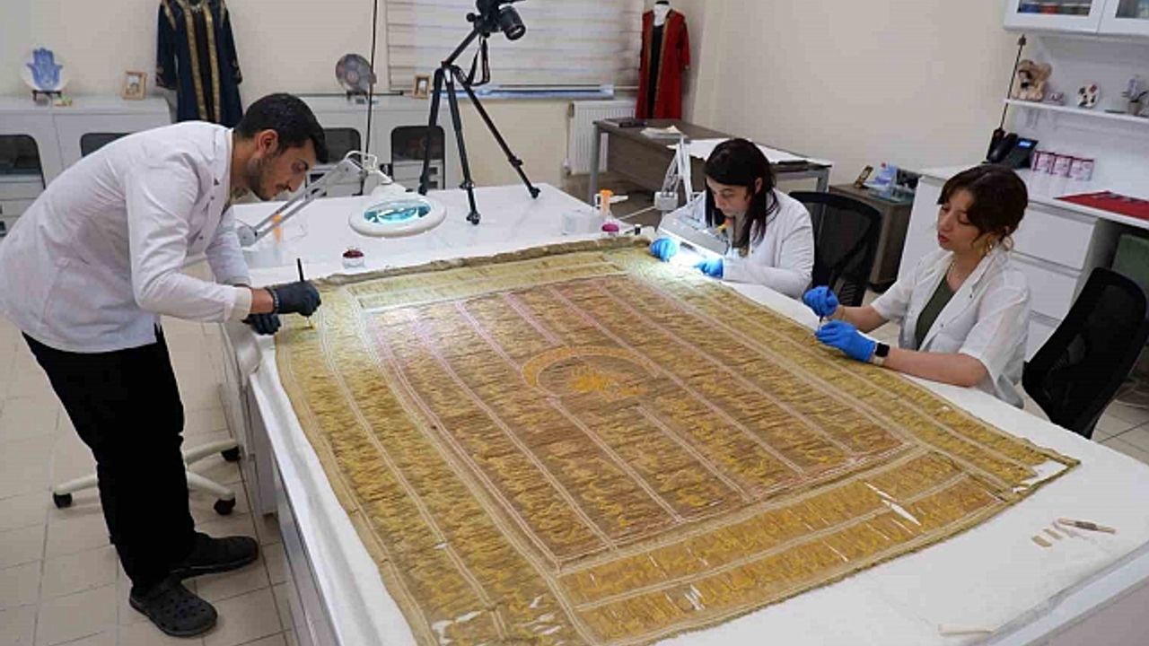 Üzerindeki tuğradan 2''nci Abdülhamid dönemine ait olduğu tespit edilen ve atlas kumaştan yapılan Kırşehir Ahi Sancağı, Erzurum Restorasyon ve Konservasyon Bölge Laboratuvarı''nda restoresi için usta ellere teslim edildi.