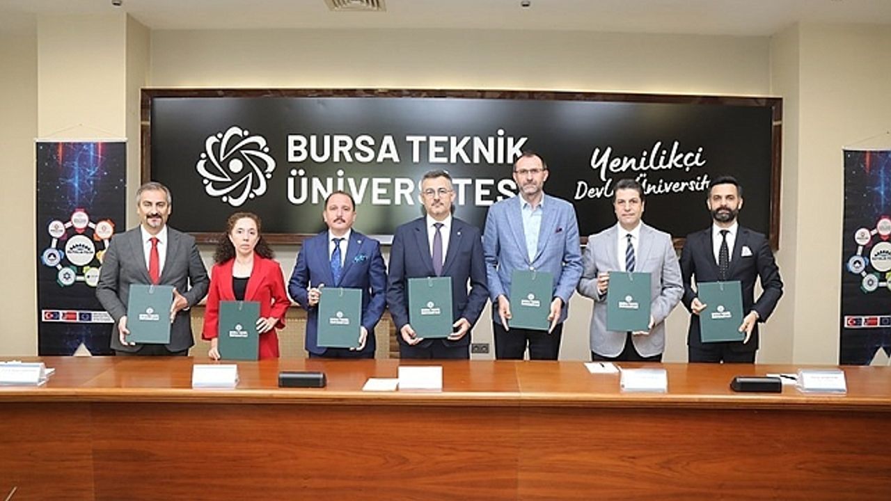 Bursa Teknik Üniversitesi''nin Mimar Sinan Yerleşkesi Senato Salonu''nda düzenlenen imza törenine, Bursa Teknik Üniversitesi Rektörü Prof. Dr. Naci Çağlar, Erzurum Teknik Üniversitesi Rektör Yardımcısı Prof. Dr. Ali Fatih Yetim, İskenderun Teknik Üniversitesi Rektörü Prof. Dr. Tolga Depci, Sakarya Üniversitesi Rektör Yardımcısı Prof. Dr. Özer Köseoğlu, Adana Alparslan Türkeş Bilim ve Teknoloji Üniversitesi Rektör Yardımcısı Prof. Dr. Cihan Çetinkaya, Kırklareli Üniversitesi Rektör Yardımcısı Prof. Dr. Meryem Çamur Demir ve Sivas Bilim ve Teknoloji Üniversitesi Rektör Yardımcısı Prof. Dr. Emre Biçer katıldı.