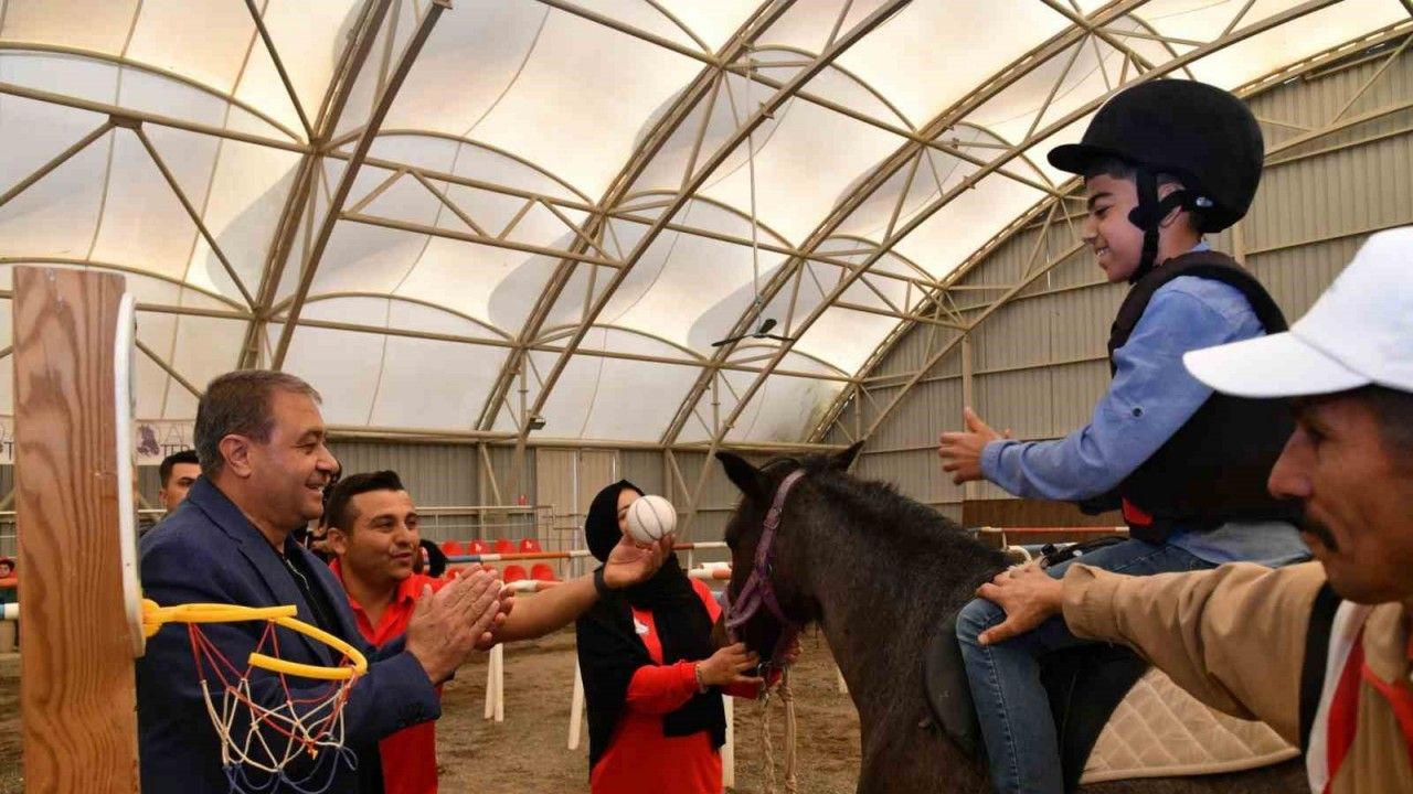 Şanlıurfa’da özel ihtiyaç sahibi 95 çocuğa yönelik atla terapi etkinliği düzenlendi. Etkinliğe Vali Hasan Şıldak da katılarak çocukları yalnız bırakmadı.