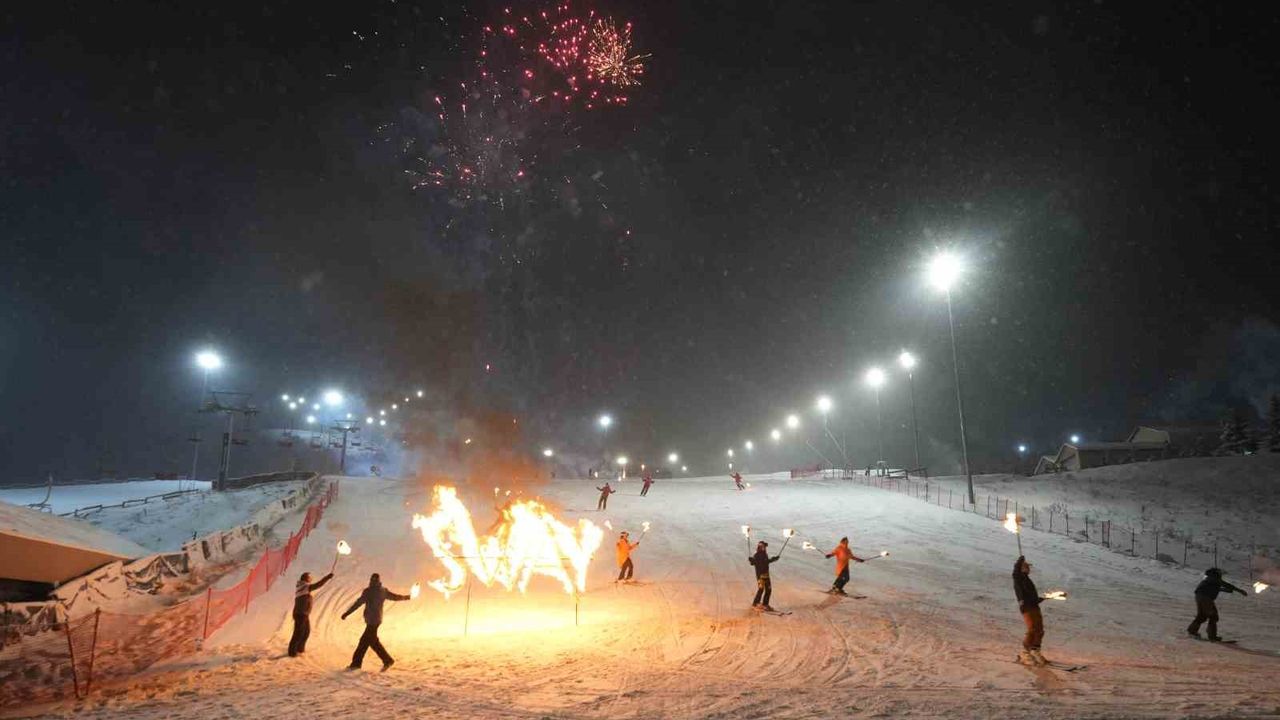 Kış turizminin gözde mekanlarından Erzurum Palandöken'de yılbaşı tatilini geçiren yerli ve yabancı misafirler, yeni yıla meşaleli kayak gösterisiyle girdi.
