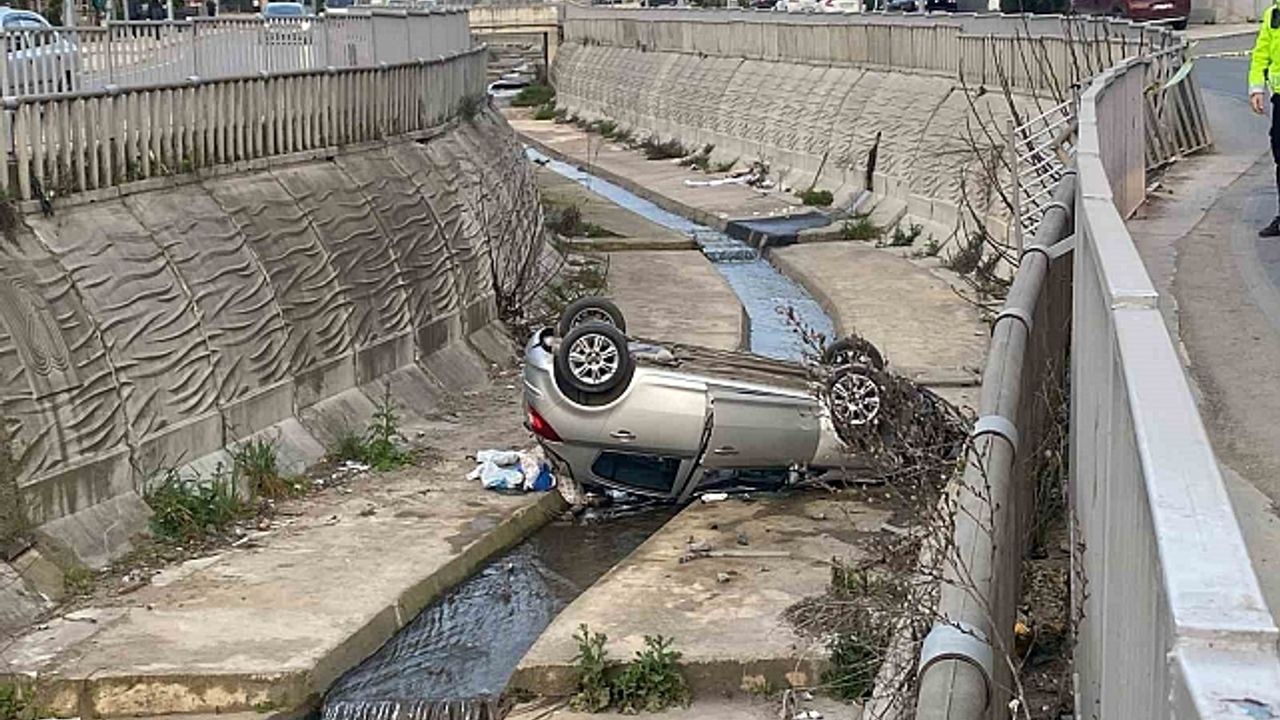 Pendik''te seyir halindeki bir otomobil, sürücüsünün direksiyon hakimiyetini kaybetmesi sonucu dereye uçtu, kazada 5 kişi yaralandı.