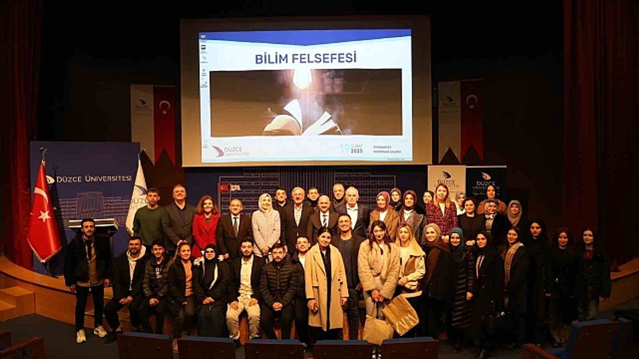 Düzce Üniversitesi öğrencilerinin sorularını da yanıtlayan Prof. Dr. Zekai Şen, bilim felsefesi hakkında ufuk açıcı değerlendirmelerde bulunarak katılımcıların farklı bakış açıları geliştirmesine önemli katkı sağladı. Program, soru-cevap bölümü ve hediye takdiminin ardından sona erdi.