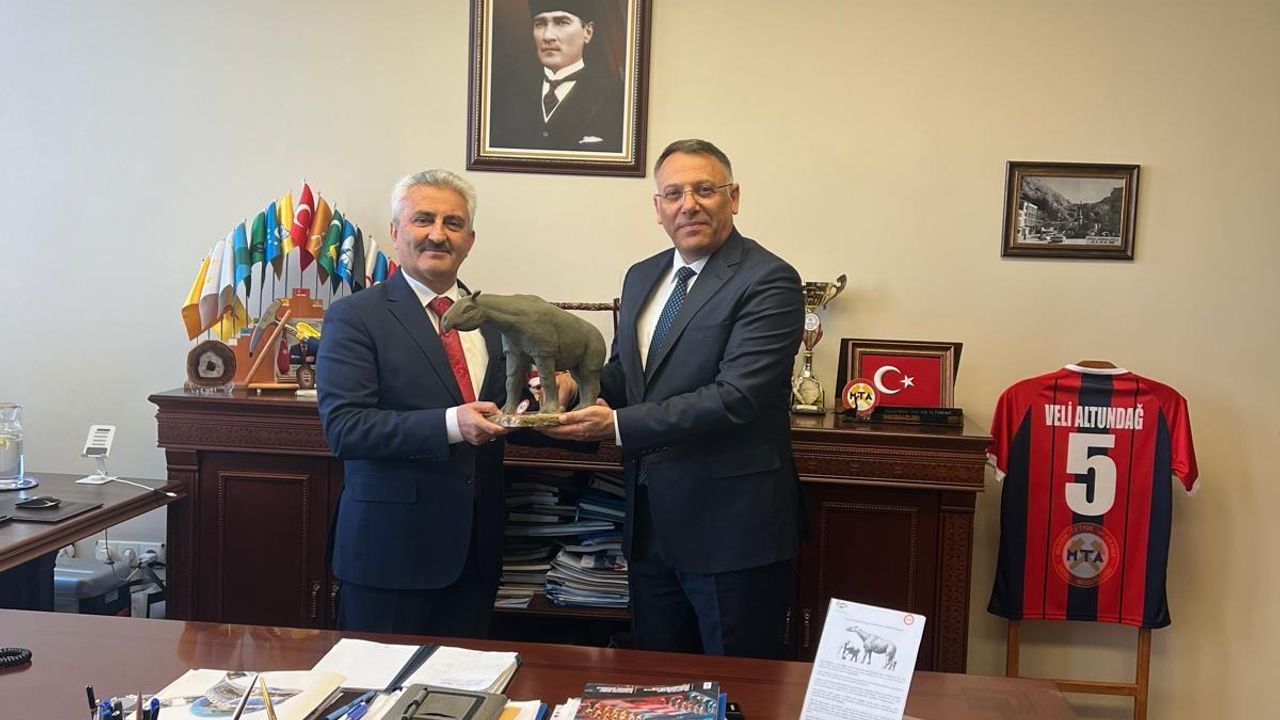 MTA Genel Müdür Yardımcısı Veli Altundağ ile bir araya gelen Rektör Gürel, özellikle jeolojik araştırmalar, bölgesel potansiyeller ve ortak proje geliştirme imkânları üzerine verimli bir istişarede bulundu.