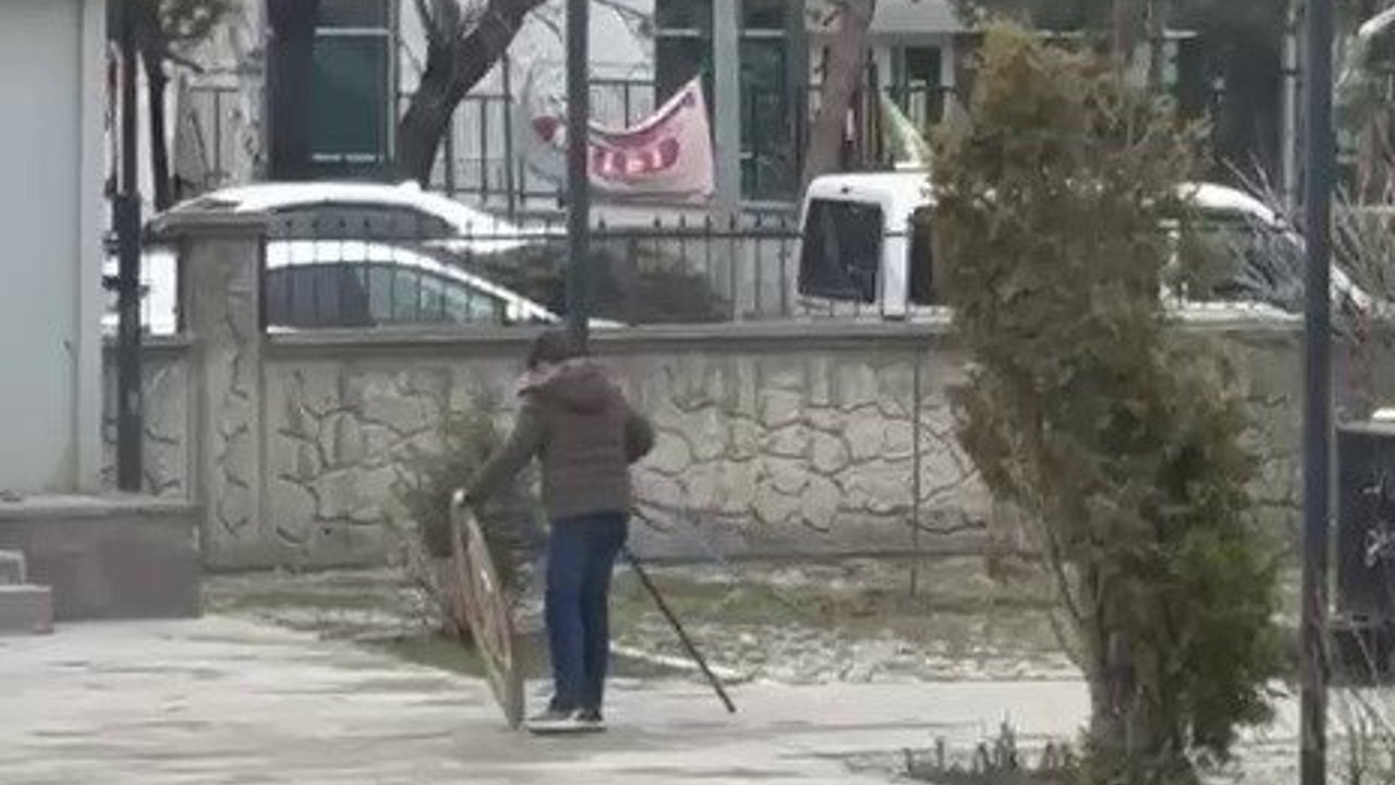 Kaymakamlık bahçesinde bulunan Atatürk Anıtı önüne, Horasan İlçe Emniyet Müdürlüğü tarafından bırakılan çelenk, program sonrası etkisini artıran şiddetli rüzgâr nedeniyle devrilerek yere düştü. Tören alanının boşalmasının ardından bölgeden geçen 12-13 yaşlarındaki bir genç, yere düşen çelengi fark etti.