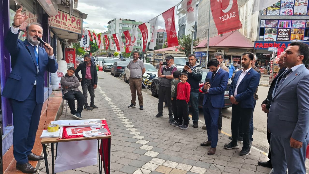 Sadet Partisi Genel İdare Kurulu Üyesi Ümit Çebi", Sadet Partisi Iğdır İl Başkanlığı açılışına katılan davetlilere teşekkür etti.