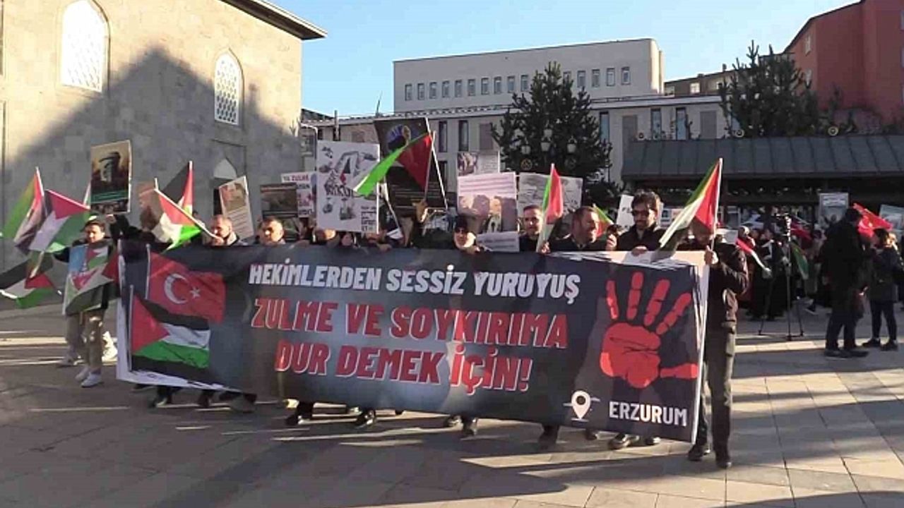 Sağlık çalışanlarının, İsrail''in Gazze''ye yönelik saldırılarını protesto etmek için Erzurum''da 52 hafta önce başlattığı sessiz yürüyüşü devam ediyor.