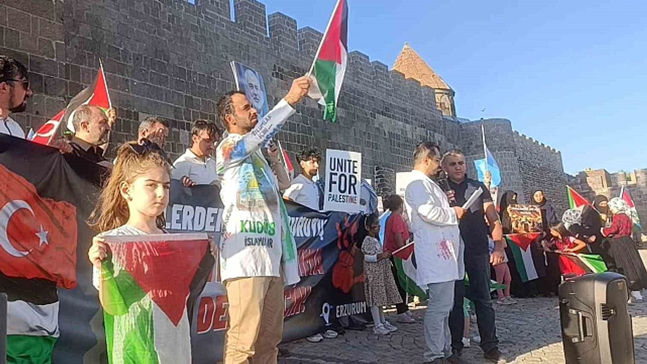 Doktor, tıp ve eczacılık fakültesi öğrencileri, sağlık çalışanları ile vatandaşlar, Erzurum Kalesi önünde bir araya gelerek Türk ve Filistin bayraklarıyla yürüdüler.