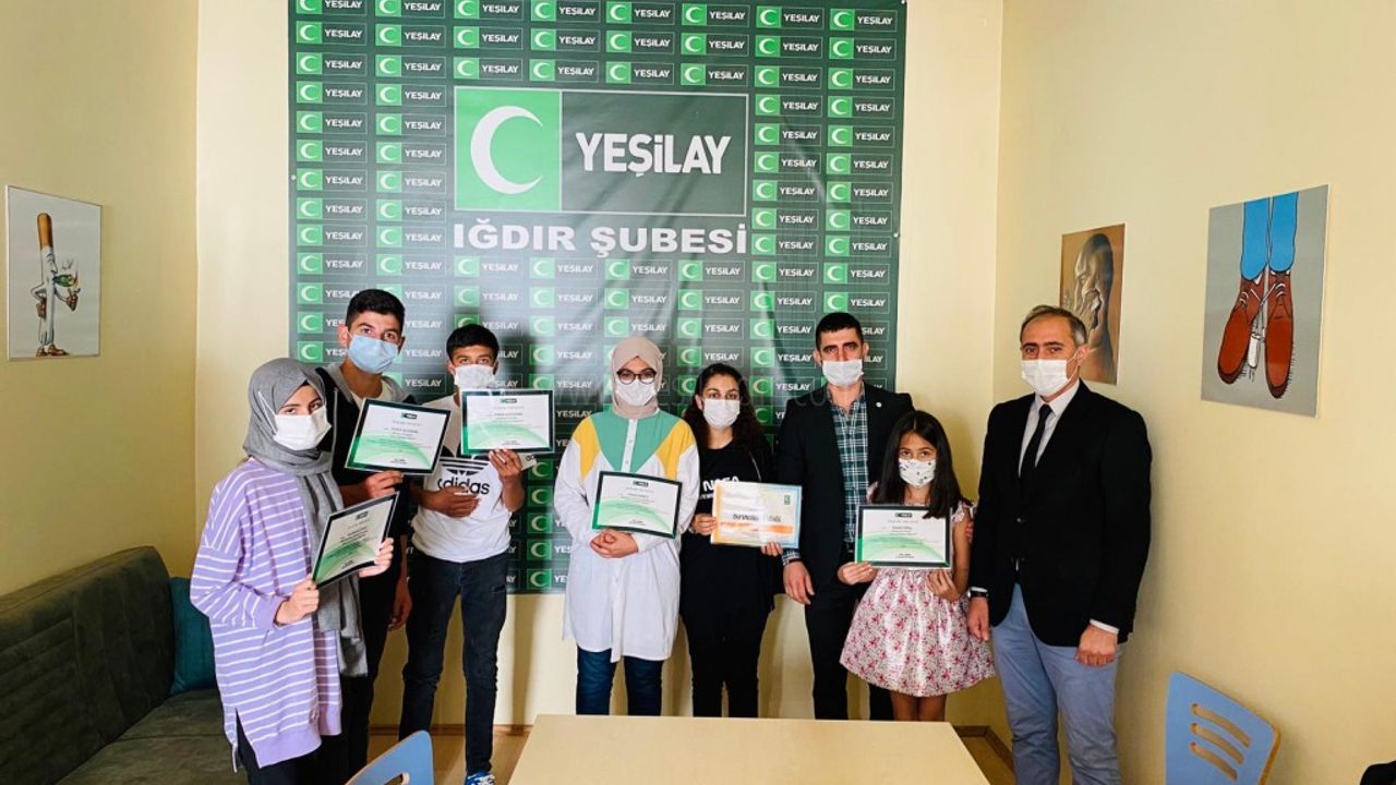 Iğdır Yeşilay şubesinde düzenlenen ödül törenine Özel Eğitim ve Rehberlik Şube Müdürü Süleyman AKKUŞ,Yeşilay Iğdır Şube Başkanı Adem ÇAKMAK,okul müdürleri,yarışmada birinci olan öğrenciler ve veliler katıldı.