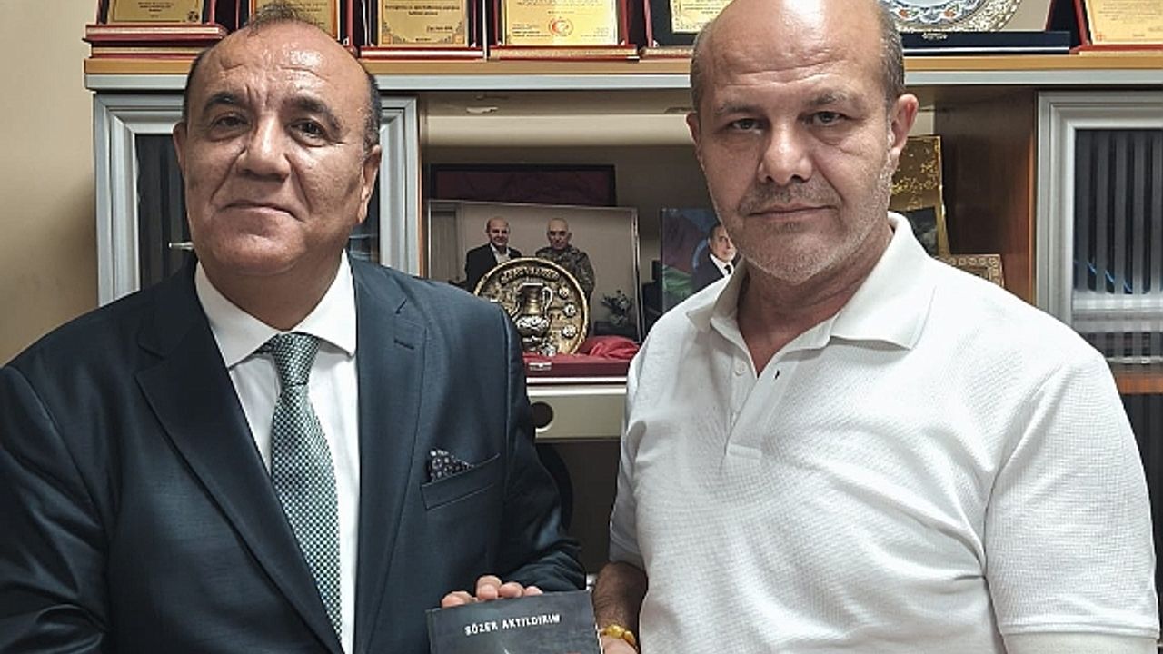 Yazar Sözer Akyıldırım, kitabını tanıtmak amacıyla Gazetemiz Genel Yayın Yönetmeni Cabbar Şıktaş"ı makamında ziyaret ederek, Sahra-yı Kerbela kitabını hediye etti.