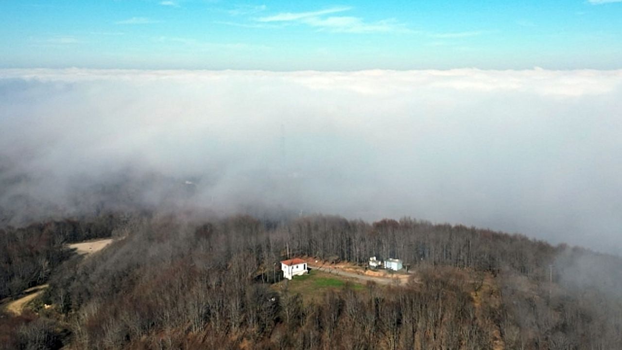 Sakarya''nın Karasu ilçesinde etkisini gösteren sis bulutları, görüş mesafesini 50 metreye kadar düşürdü. Sis bulutları sonrası ortaya kartpostallık görüntüler çıktı. Kartpostallık görüntüler, Karasu''nun Kızılcık Mahallesi tepelerinden dron ile görüntülendi.