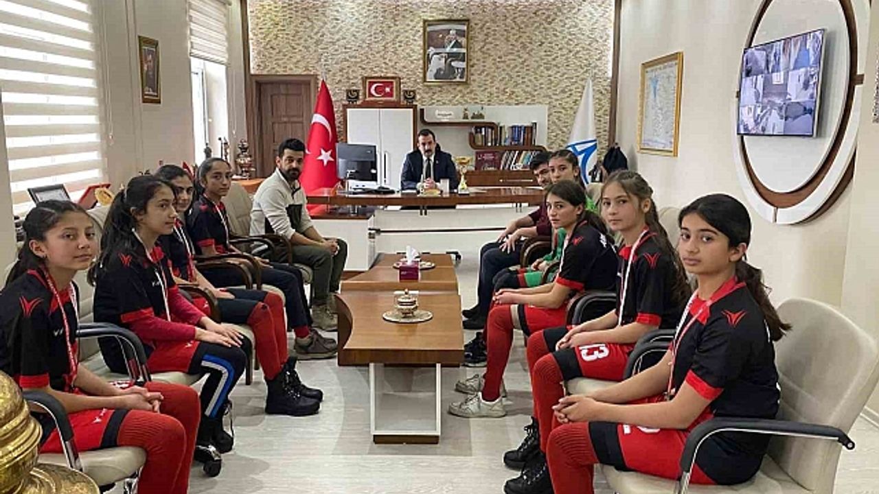 Kars''ta düzenlenen futsal turnuvasında 1''inci olan sporcular kaymakam Akköz''ü ziyaret ederek, başarılarını Akköz ile paylaştılar.