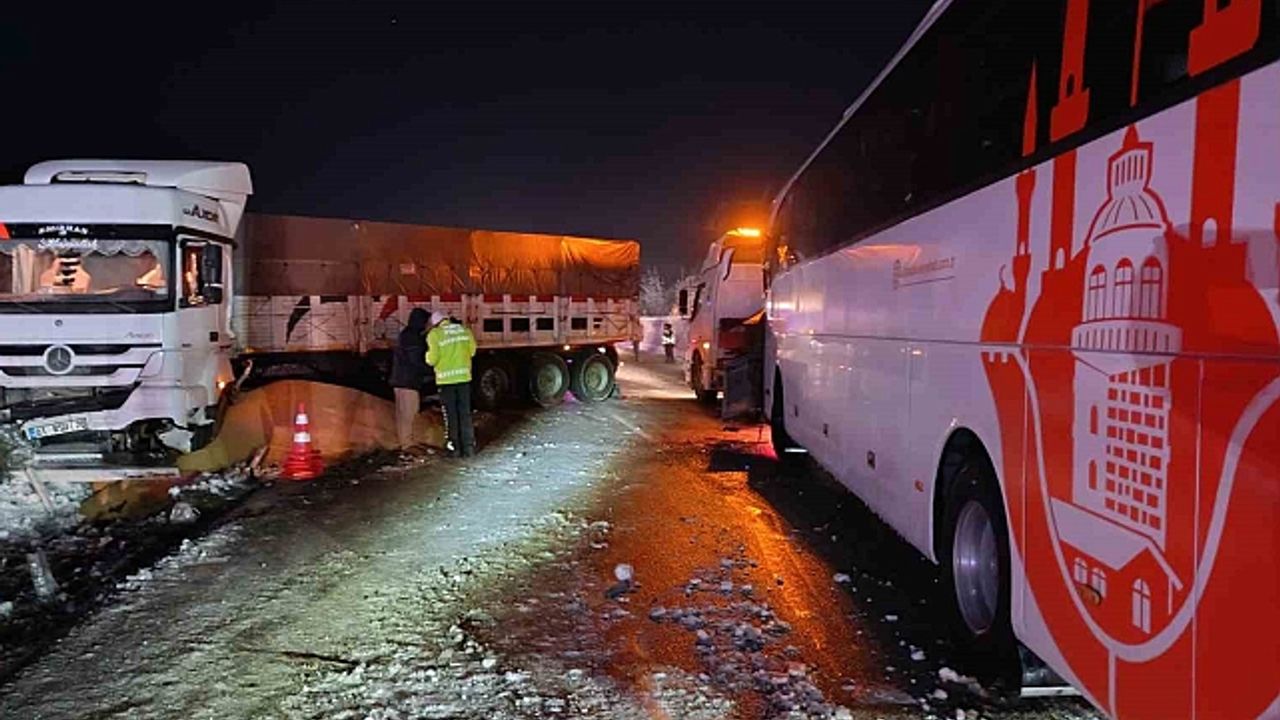 Samsun-Ankara karayolunda kar ve buzlanma nedeniyle meydana gelen kazada yolcu otobüsü ile tır çarpıştı. Kazada 5 kişi yaralanırken, yol yaklaşık 2 saat ulaşıma kapandı.