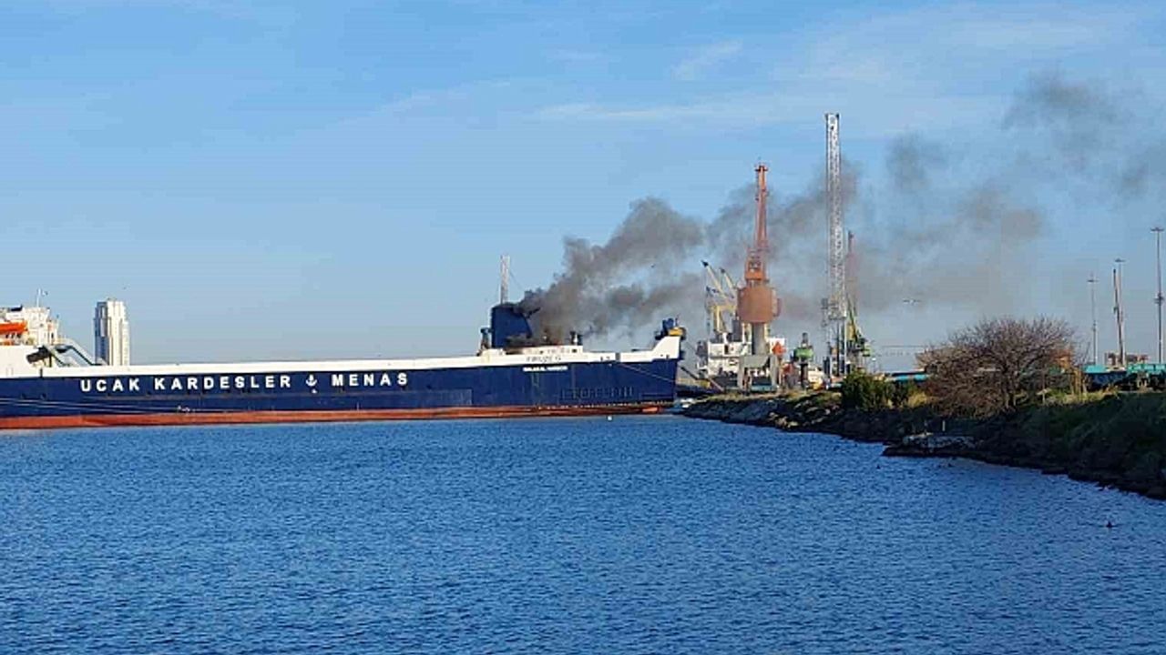 Samsun Limanı''nda bulunan bir gemide yangın çıktı.