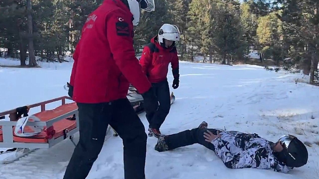 Sarıkamış Kayak Merkezi''nde senaryo gereği yaralanma olayının 112 Acil Çağrı Merkezi''ne bildirilmesi üzerine JAK Timleri harekete geçti. Kısa sürede kar motorlarıyla olay bölgesine ulaşan ekipler, 2 ayrı nokta kayarken düşerek yaralanan vatandaşları önce sedyeye aldı, ardından da kar motorunun arkasındaki kızağa yerleştirdi. Sarıkamış oteller bölgesine getirilen yaralılar burada ambulansa alınarak Sarıkamış Devlet Hastanesi''ne sevk edildi. JAK timlerinin tatbikatı gerçeği aratmazken, bu tür tatbikatlar muhtemel kış kazalarında hızlı ve etkin müdahale açısından büyük önem taşıyor. Sarıkamış''ta gerçekleştirilen tatbikat, JAK timlerinin profesyonelliğini bir kez daha gözler önüne serdi.