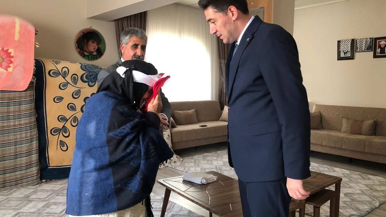 Ziyaret sırasında Kaymakam Erdoğan’ın hediye ettiği Türk Bayrağını öpüp anlına koyan şehit annesi, duygusal anlara neden oldu. O anlar, ziyarette bulunan herkesi derinden etkiledi.