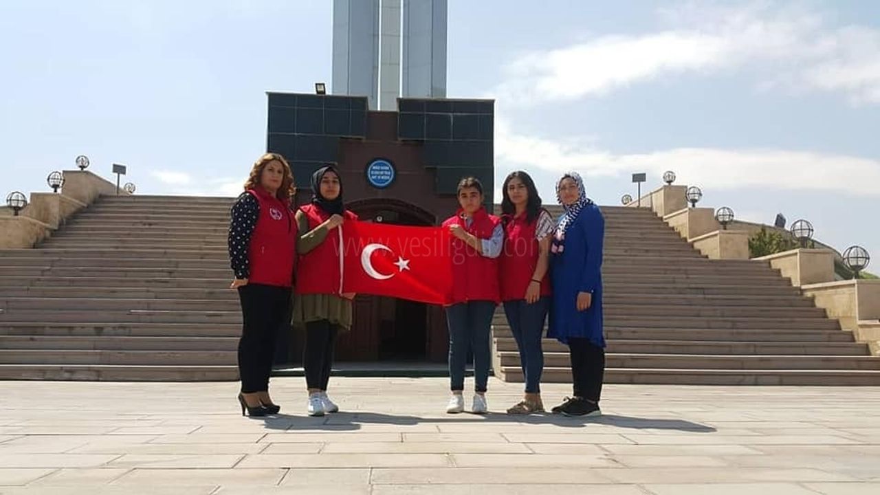 Ziyarette şehitlik önünde türk bayrağı açarak şehitlerimiz için dualar okudular.