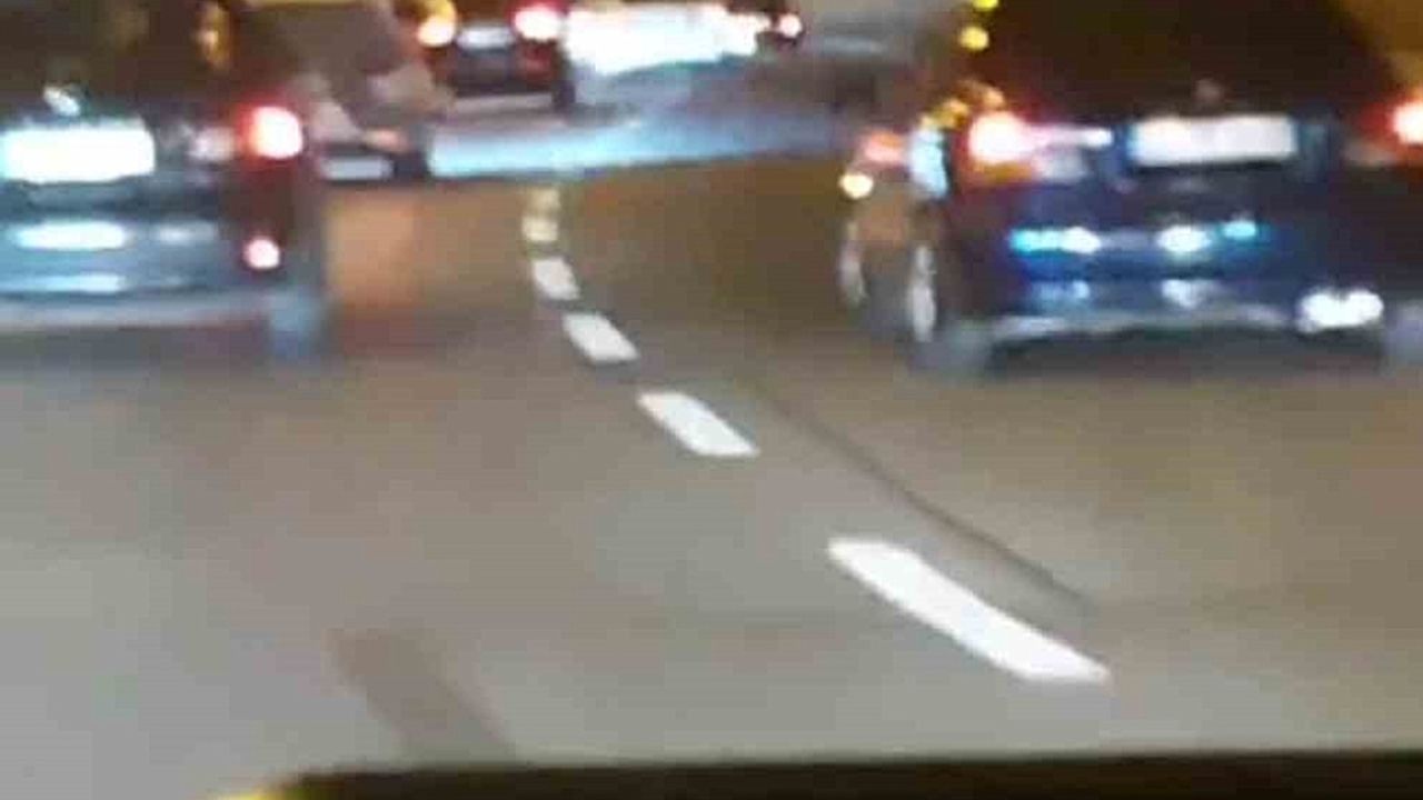 Ümraniye''de seyir halindeki aracından sarkarak yandaki abart egzoslu aracın videosunu çeken şahıs başka bir aracın sürücüsü tarafından görüntülendi.