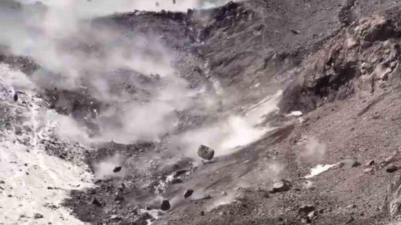 Sıcak hava dalgası Ağrı Dağı"nda kaya düşmelerini tetikledi. Büyük gürültülerle yuvarlanan kayalar toz bulutları oluşturdu.