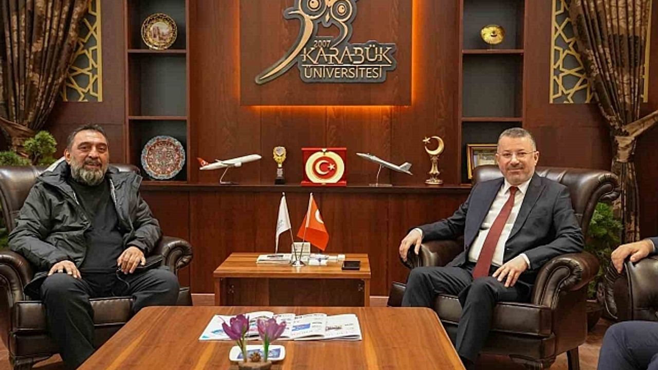 Tiyatro ve sinema dünyasının önemli isimlerinden Ahmet Yenilmez, Karabük Üniversitesi Rektörü Prof. Dr. Fatih Kırışık''ı ziyaret etti.