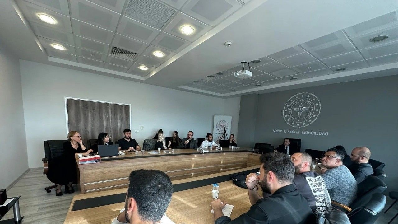 Sinop İl Sağlık Müdürlüğü toplantı salonunda Sağlık Hizmetleri Başkanı Uzm. Dr. Mehmet Bağlıoğlu başkanlığında düzenlenen toplantıya, Başkan Yardımcısı Dr. Aslı Kavizade, hastane başhekimleri ve ilgili birim sorumluları katıldı.