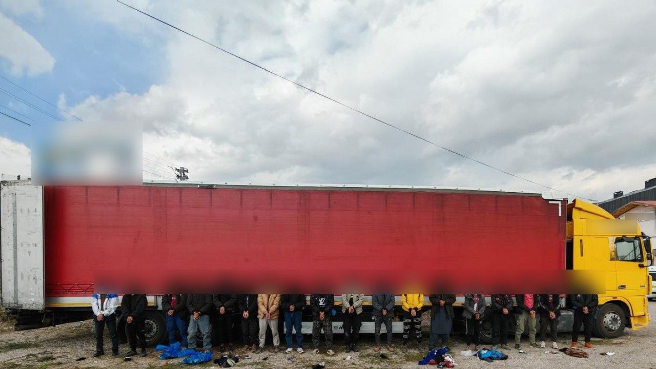 Sivas’ta polislerin şüphelenerek durdurduğu tırın dorsesinde 18 kaçak göçmen çıktı.