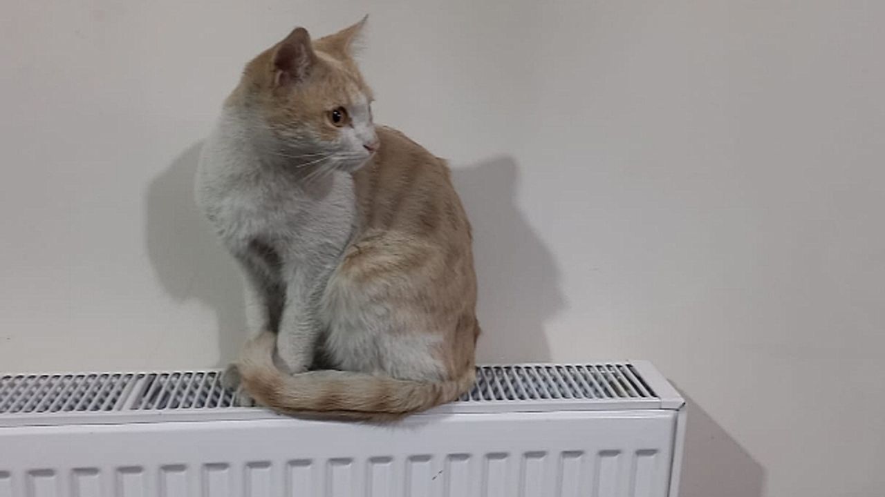 Isınmak için çıktığı petek üzerinde kendisini izleyen vatandaşlara aldırmayarak sıcak kaloriferin tadını çıkardı. Bir süre kalorifer peteğinde ısınan kedi  daha sonra p/etekten  inerek içeride tur atarken dışarıda sokakta kalan diğer kediyle camdan bir birine bakıp oyun oynadılar.