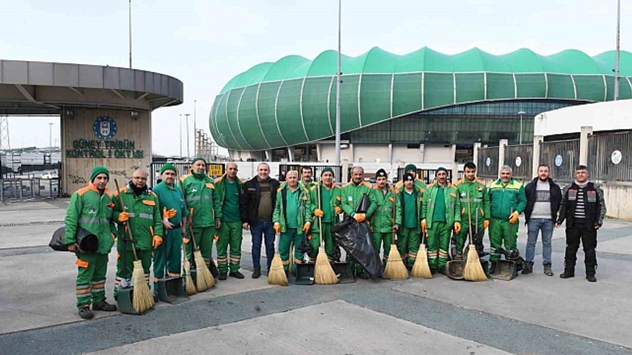 Osmangazi Belediyesi Temizlik İşleri Müdürlüğü ekipleri, bu hafta oynanan ve Bursaspor''un 2-0 kazandığı Ergene Velimeşespor karşılaşmasının ardından temizlik çalışması gerçekleştirdi. Stadyum çevresinde, koridorlarda ve tribünlerde iki gün boyunca temizlik çalışması yürüten ekipler, 43 bin 361 kişi kapasiteli dev stadyumu baştan aşağı temizleyerek bir sonraki karşılaşma için hazır hale getirdi.