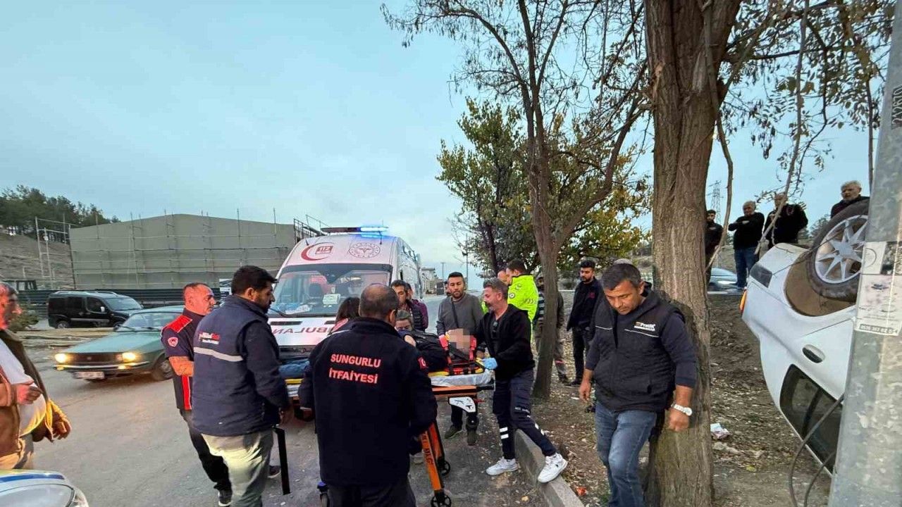 Çorum’un Sungurlu ilçesinde, kontrolden çıkan otomobilin takla attığı kazada sürücü yaralandı.