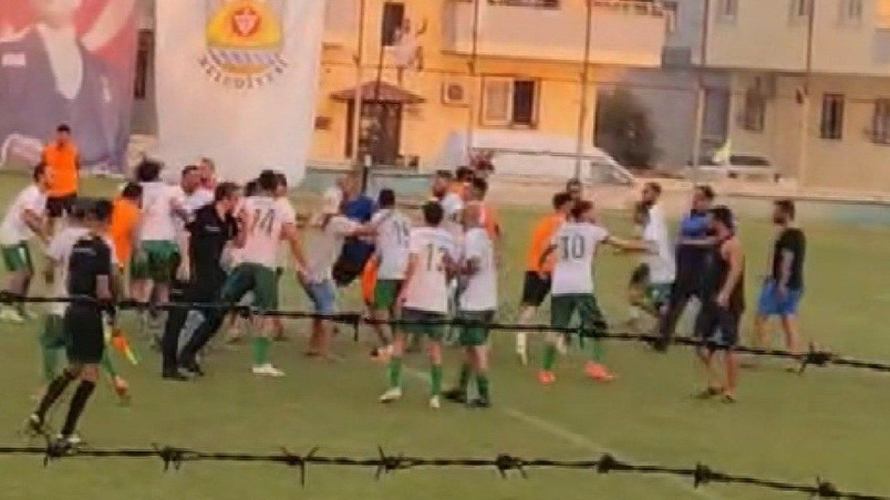 Mersin"in Tarsus Belediyesi tarafından organize edilen futbol turnuvasında saha bir anda karıştı. Futbolcular tekme tokat birbirine girdi.