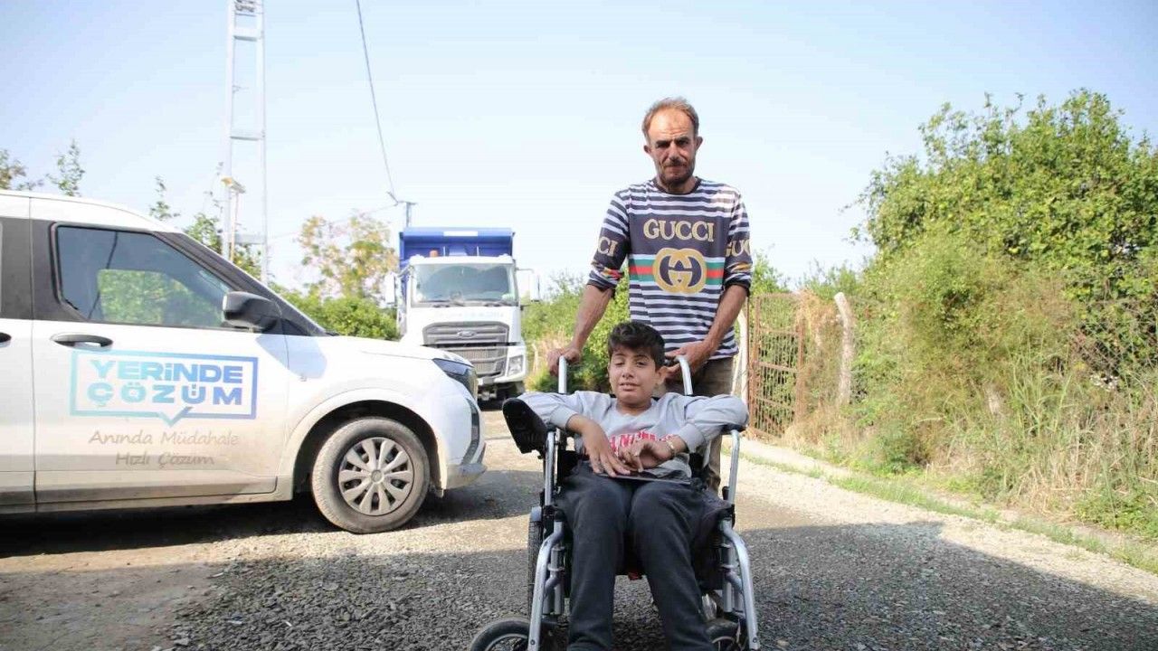 Arsuz ilçesi Hacı Ahmetli Mahallesi’nde yaşayan minik Ali Yıldız’ın tekerlekli sandalyesi ile zor ulaşım sağladığını tespit ederek harekete geçen ekipler, yol sorununu çözmek adına Fen İşleri Dairesi Başkanlığı’na bağlı ekiplere bildirmelerinin ardından çözüm odaklı çalışmalar gerçekleştirdi.