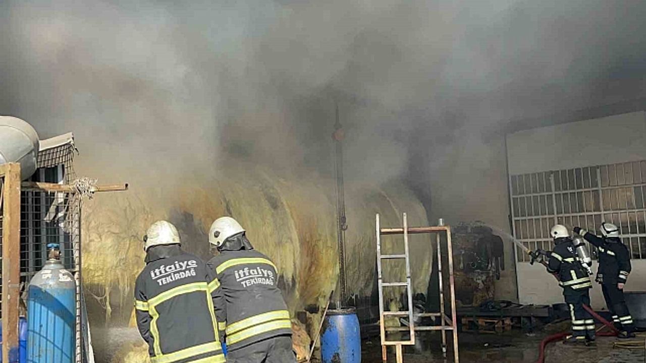 Tekirdağ Çorlu''da makine üretim tesisinde kazanda yapılan test denemesi esnasında yangın çıktı.