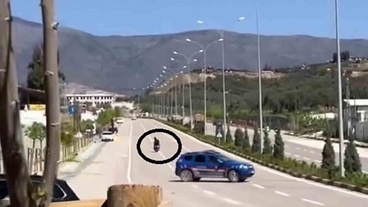 Antakya ilçesi Saraycık Mahallesi mevkisi Expo yolunda ters yöne girerek jandarma ekiplerinden kaçan motosikletli şahsın o anlarını başka bir arkadaşı cep telefonuyla kayıt altına aldı. Trafiği tehlikeye düşüren ve bu anları kayıt altına alan şahıslar, görüntüleri Tiktok isimli sosyal medya uygulamasında paylaştı. Durum üzerine harekete geçen jandarma ekipleri; ''dur'' ihtarına uymayan, ters yöne giren ve trafiği tehlikeye düşüren ehliyetsiz sürücü ve o anları kayıt altına alan şahsı yakalayarak gözaltına aldı. Motosiklet sürücüsüne 28 bin TL cezai işlem uygulanırken, 2 şahıs hakkında da adli işlem başlatıldığı öğrenildi.