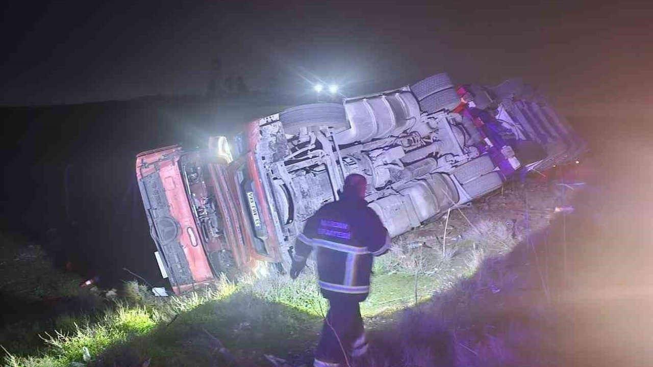 Mardin'in Nusaybin ilçesinde tırın devrilmesi sonucu meydana gelen kazada sürücü yaralandı.
