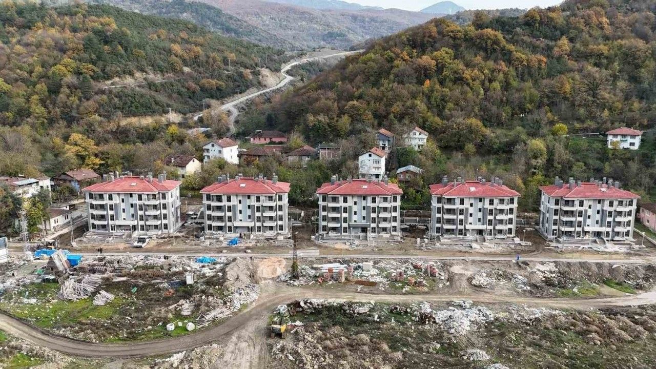 Köyde yaşanan sel afetinin ardından vatandaşların güvenli konutlara kavuşması amacıyla başlatılan proje kapsamında, 5 bloktan oluşan 40 konutun inşasında sona gelindi.