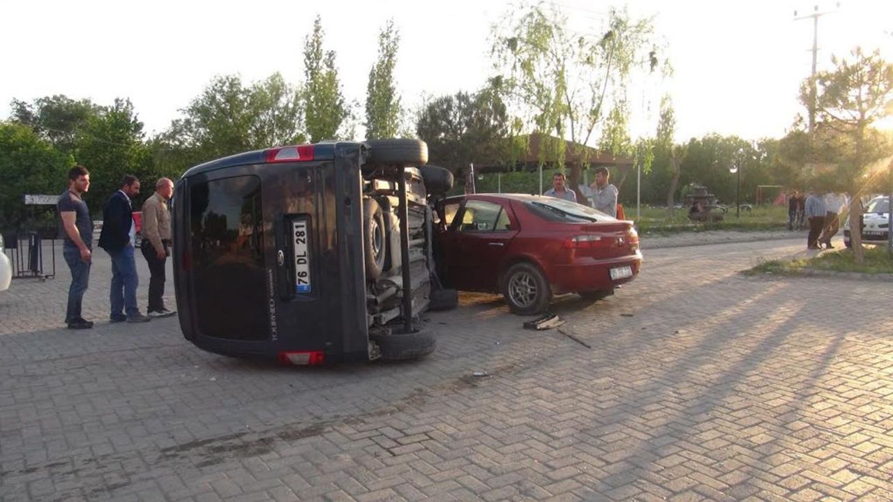 Her iki aracın sürücüsü hafif yaralandı. Vali Konağı Caddesi üzerinde Kürşat N. yönetimindeki 25 FV 133 plakalı otomobil Ogün A.''nın kullandığı 76 DL 281 plakalı minibüsle çarpıştı.