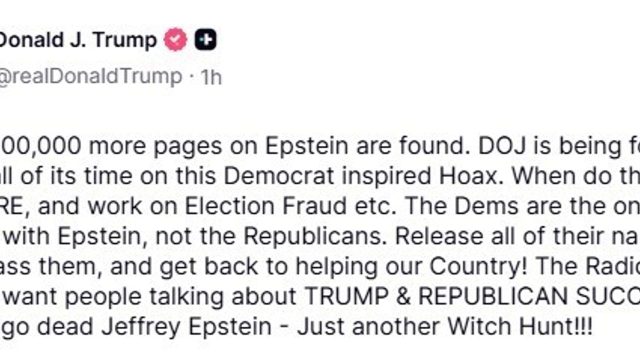 ABD Başkanı Donald Trump, ABD Adalet Bakanlığı'nın tüm zamanını 'Epstein' belgelerine harcamak zorunda bırakıldığını ve Epstein ile ilişkisi bulunanların Cumhuriyetçiler değil, Demokratlar olduğunu belirterek, 'Hepsinin isimlerini açıklayın, ifşa edin ve gerçekten ülkemize hizmet etmeye geri dönün' çağrısında bulundu.