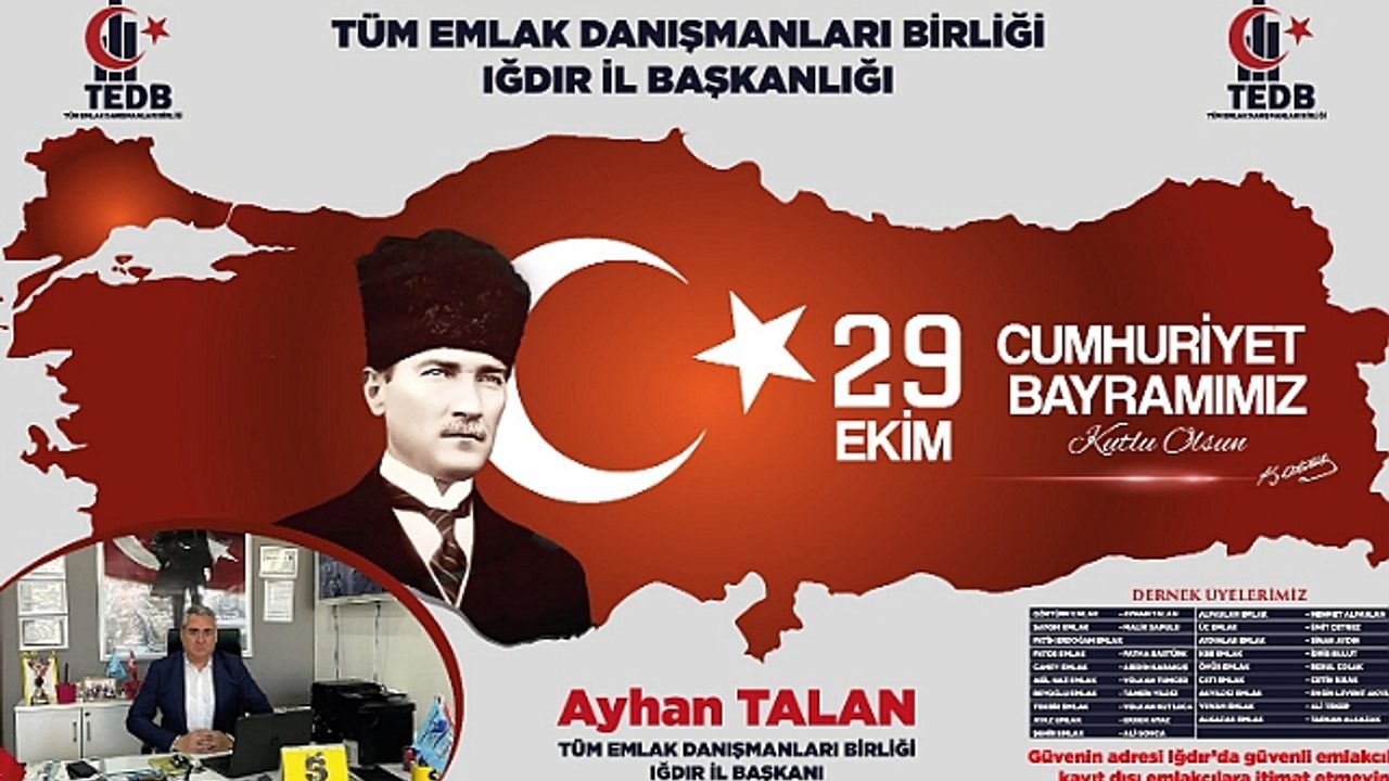 Tüm Emlak Danışmanları Birliği 81 ilde temsilci seçerken  Ankara"da düzenlenen mazbata töreninnde Tüm Emlak Danışmanları Birliği Iğdır İl Temsilciliğine ise Ayhan Talan atandı.