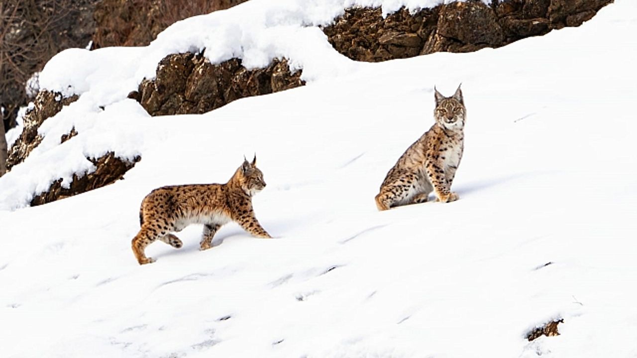 Tunceli''de Munzur Vadisi Milli Parkı''nda, nesli tehdit atında olduğu için Dünya Doğa ve Doğal Kaynakları Koruma Birliği (IUCN) tarafından kırmızı listede yer alan bir anne ve 2 yavru vaşak görüntülendi.