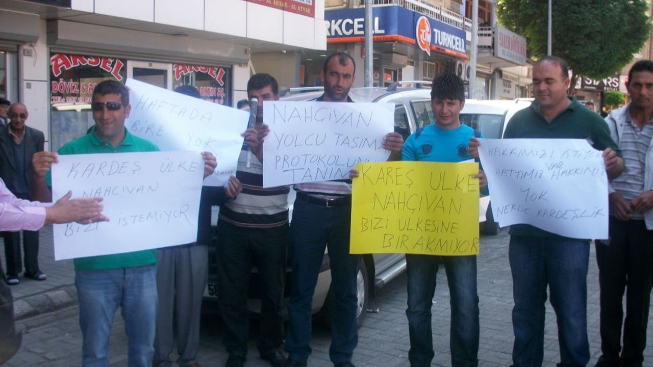 Iğdır''da Zübeyde Hanım Bulvarında pankart açan sürücüler, Türkiye ile Nahcivan arasındaki gümrük kapılarından geçişte sıkıntı yaşadıklarını belirttiler.