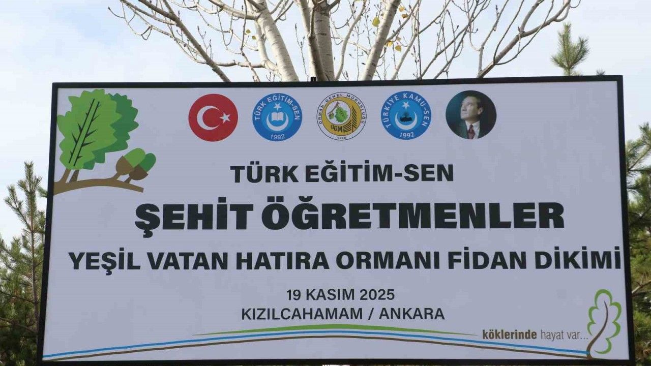 Türk Eğitim-Sen ile Türk Kamu-Sen’e bağlı sendika temsilcileri, üyeler ve gönüllüler, Ankara’nın Kızılcahamam ilçesinde şehit öğretmenlerin hatırasını yaşatmak amacıyla düzenlenen fidan dikim etkinliğinde bir araya geldi. Programda şehit öğretmenlerin isimlerinin yer aldığı özel kağıtlar da fidanların bulunduğu alana yerleştirildi. Programda konuşan Türk Eğitim-Sen Genel Başkanı Talip Geylan, hem doğaya katkı sunmayı hem de eğitim camiasına büyük emek vermiş şehit öğretmenlerin adını yaşatmayı amaçladıklarını belirtti. ‘Yeşil vatan’ vurgusunu doğayla buluşturmaya devam edeceklerini aktaran Geylan, ağaçlandırma bilincinin yaygınlaştırılması ve geleceğe daha yaşanabilir bir Türkiye bırakılması için bu tür çalışmaların devam edeceğini ifade etti.