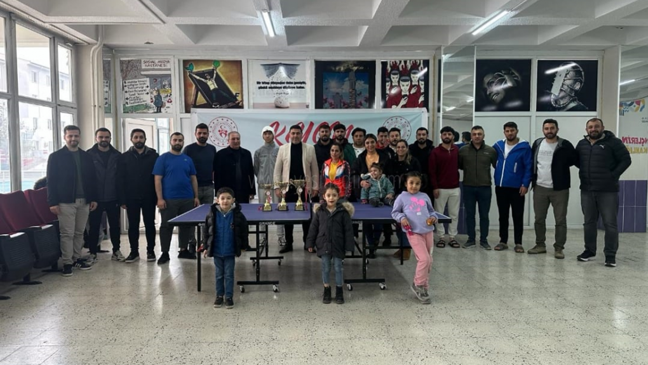 Masa tenisi turnuvasında dereceye giren Şahin Yelboğa, Alihan Sevimli, Ahmet Çevik"e ödülleri KYK Yurt Hizmetleri Müdürü Erol Bayat tarafından verildi.