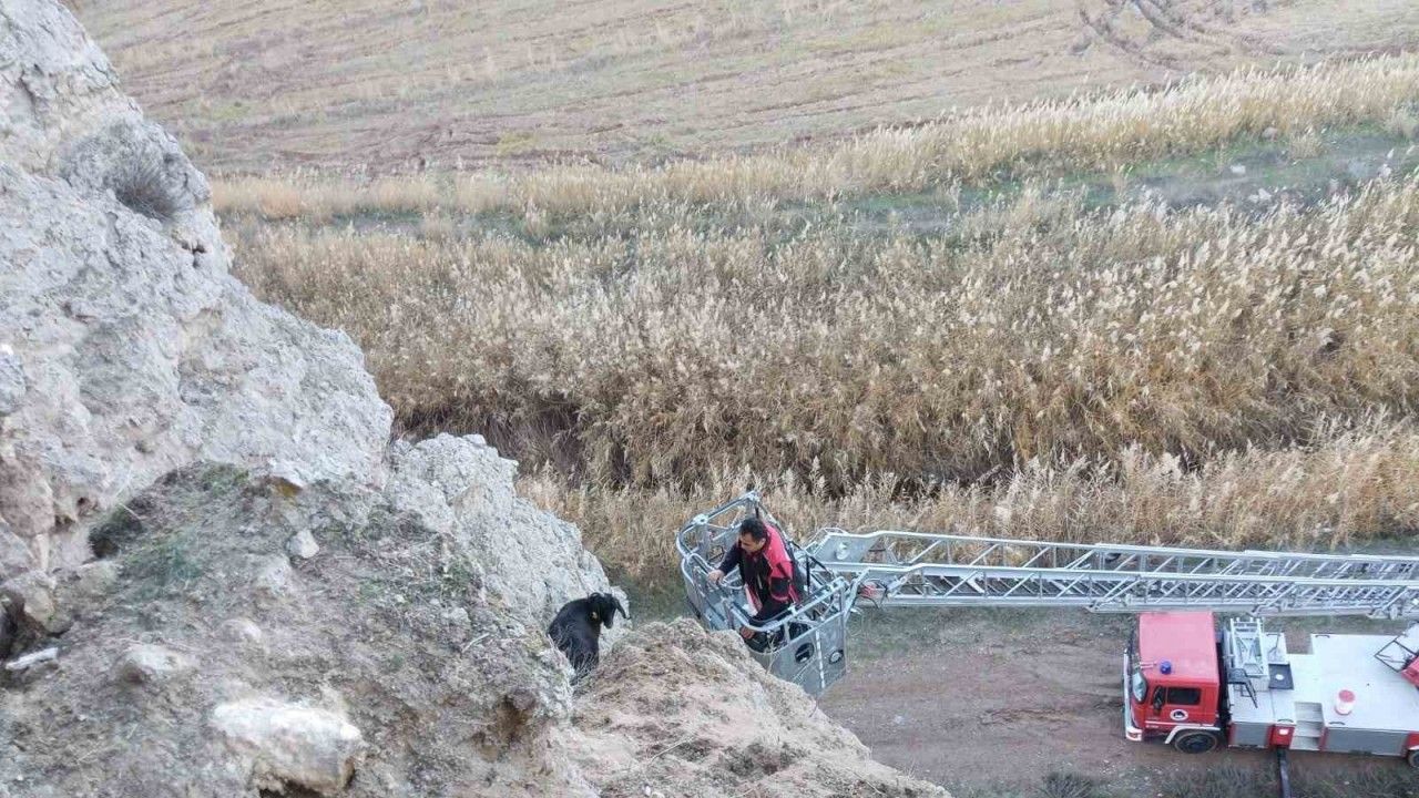 Çorum’un Sungurlu ilçesine uçurumda mahsur kalan keçiler, itfaiye ekipleri tarafından kurtarıldı.