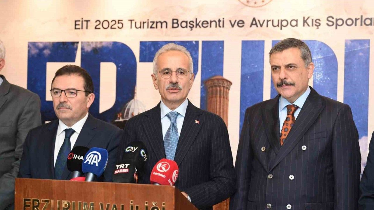 Ulaştırma ve Altyapı Bakanı Abdulkadir Uraloğlu, 379 kilometre uzunluğundaki Erzincan-Erzurum-Kars hızlı tren hattı etüt proje çalışmalarının devam ettiğini belirterek, "Erzincan-Erzurum arası 173 kilometrelik kesimin projesini tamamladık. Erzurum-Kars arası 206 kilometrelik kesimde ise yüzde 90 ilerleme sağladık. Proje çalışmalarını 2026 yılı ilk yarısında tamamlamayı hedefliyoruz" dedi.