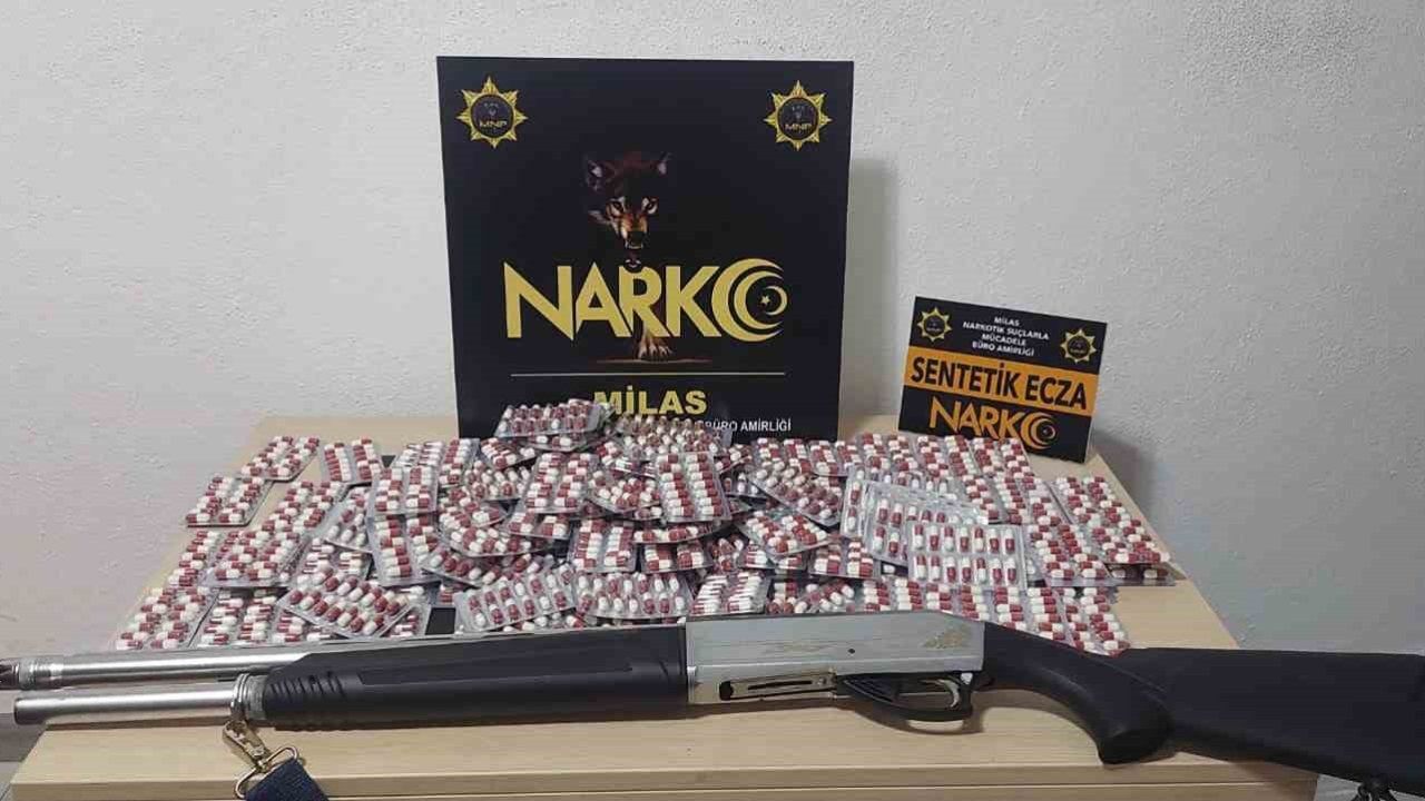 Muğla Emniyet Müdürlüğü Narkotik Suçlarla Mücadele Şube Müdürlüğü ekiplerince Milas ilçesine uyuşturucu madde taşıdıkları yönünde bilgi edinildi. Yapılan çalışmalar kapsamında, Antalya İli istikametinden Milas ilçesine gelen şüpheli 3 şahıs Narkotik Şube ekiplerince yakalandı. Şüpheli şahısların araçlarında ve ikametinde yapılan aramada; 2 bin 115 adet sentetik ecza maddesi ve ruhsatsız av tüfeği ele geçirildi.