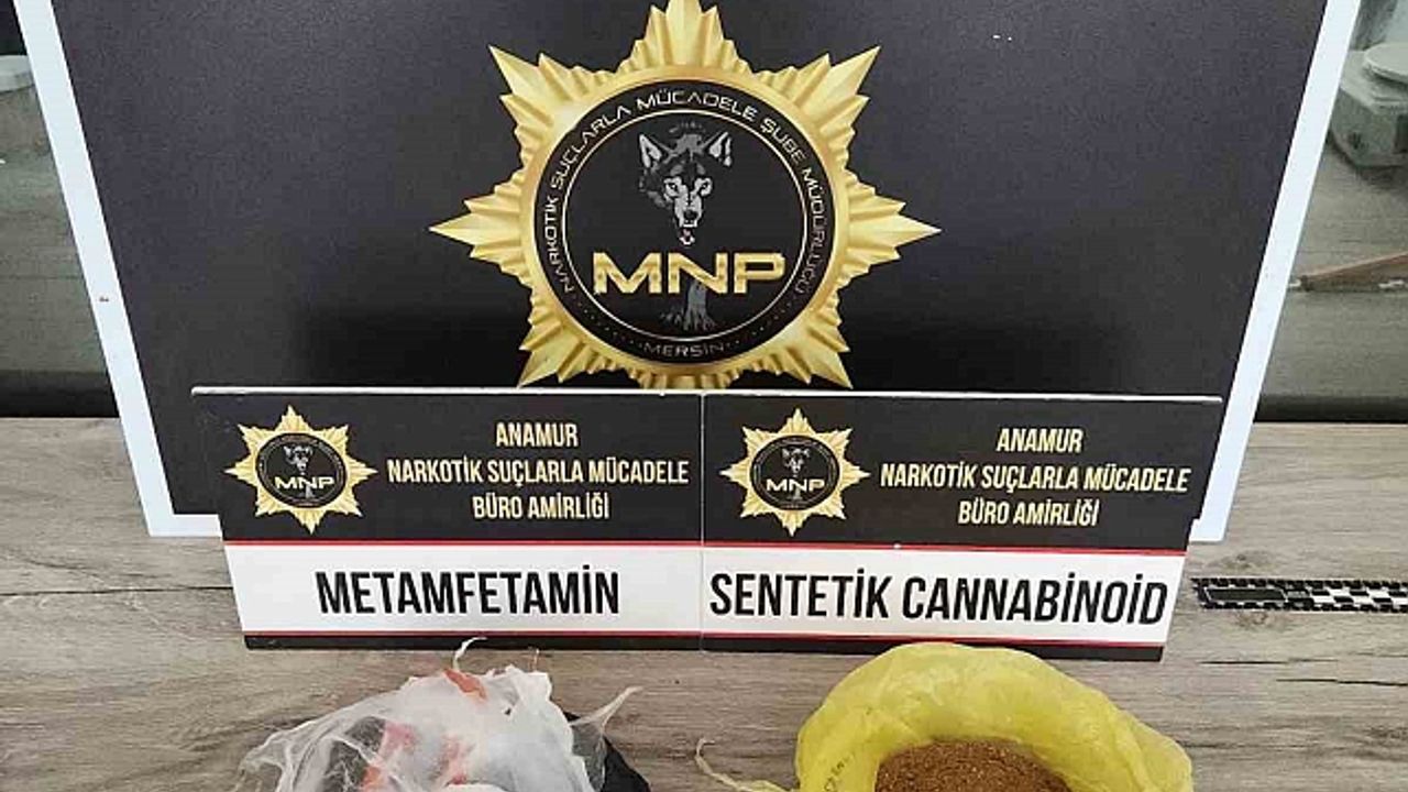 Alınan bilgiye göre, İl Emniyet Müdürlüğü ekipleri, Anamur Cumhuriyet Başsavcılığı koordinesinde uyuşturucu madde ticareti yapan şüpheli A.E.''nin (26), yakalanması için çalışma yaptı. Ekiplerin ilçede yaptığı çalışmasında şüphelinin uyuşturucu maddeleri sakladığı yer tespit edildi. Bunun üzerine düzenlenen baskınla şüpheli yakalandı, çeşitli miktarlarda sentetik kannabinoid ve metamfetamin ele geçirildi.