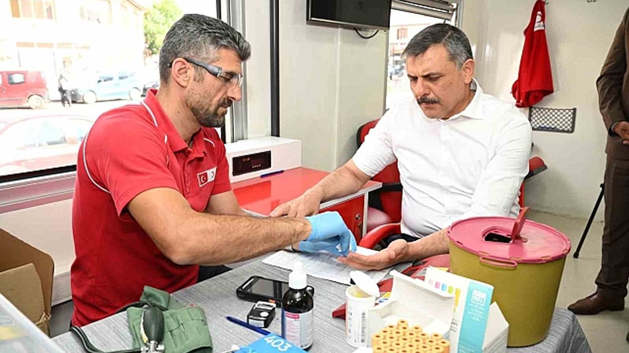 Erzurum Valisi Mustafa Çiftçi, Çat ilçesinde organize edilen kan bağışı kampanyasına katıldı.